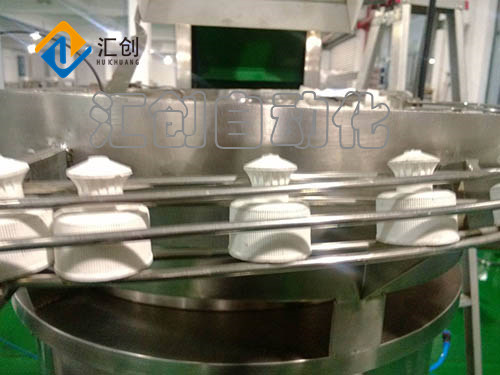 7、對瓶蓋進行整理,使之同向(口向上或向下)輸出。將瓶蓋輸入到理蓋機內(nèi)。